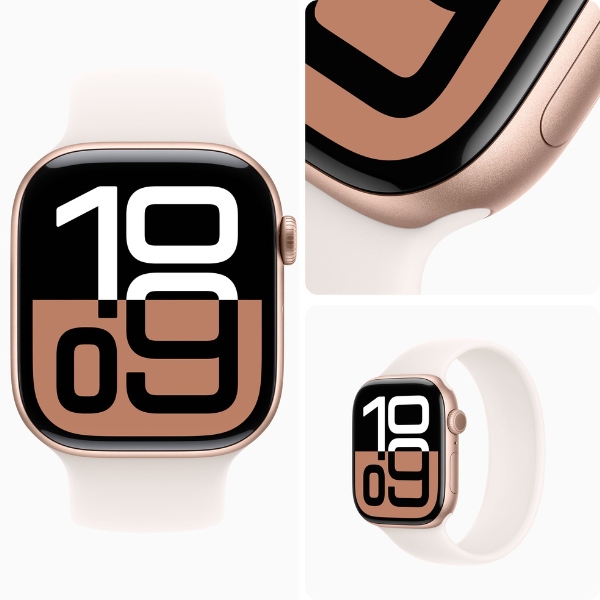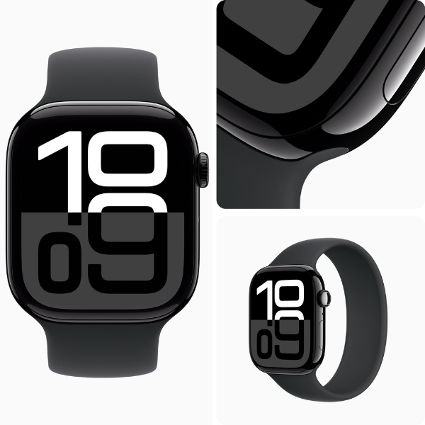 Vẫn giữ phong cách thiết kế đặc trưng của Apple Watch nhưng với Series 10 có vẻ ngoài thanh lịch với các tùy chọn màu sắc: Đen Bóng, Vàng Hồng và Bạc. Viền nhôm mang lại cảm giác nhẹ nhàng (chỉ 30 gram) và thoải mái khi đeo trên tay. Kích thước 42mm phù hợp với cổ tay vừa và lớn, tạo cảm giác chắc chắn. Mặt kính Ion-X giúp tăng cường độ bền, chống trầy xước.