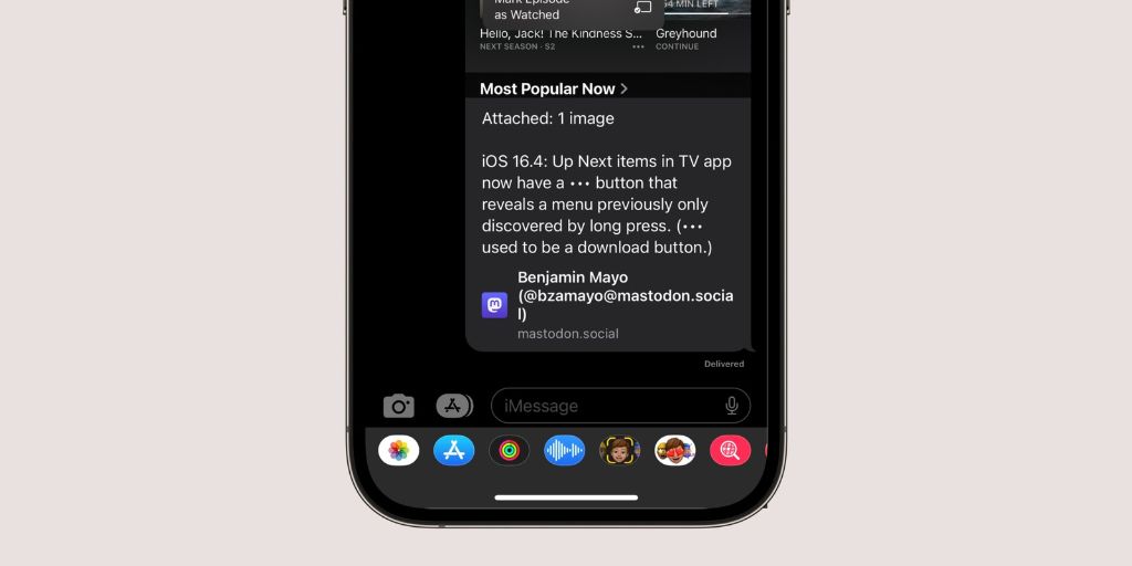 iOS 16.4 beta cho phép xem trước nhiều nội dung liên kết Mastodon trong ứng dụng tin nhắn. Điều này tương tự như những gì ứng dụng cung cấp cho Twitter và các trang web khác.