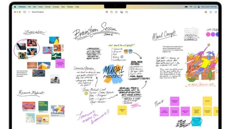 Một công cụ cộng tác mới cũng đã được xem trước trong WWDC có tên là Freeform. Ứng dụng hoạt động như một bảng trắng lớn, nơi người dùng có thể thả liên kết, hình ảnh, văn bản, v.v. vào một khung vẽ vô hạn trong thời gian thực. Xem ai đang hoạt động trong phiên Freeform khi họ thao tác nội dung và xem con trỏ của họ di chuyển xung quanh.