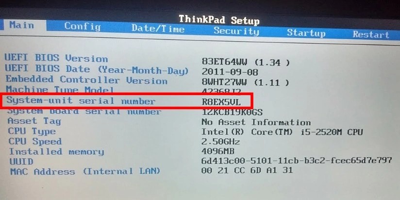 Cách 3: Kiểm tra số serial thông qua BIOS.