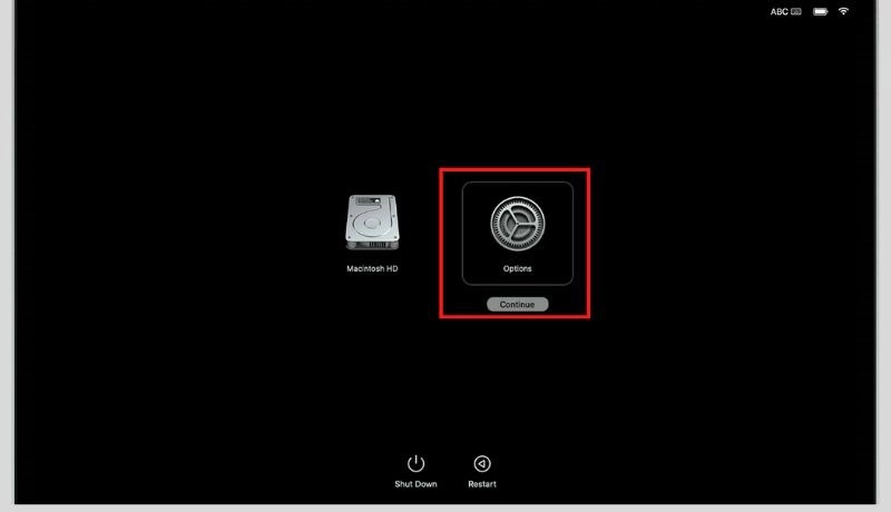 Bước 5: Trong Internal (Nội bộ), hãy kiểm tra ổ đĩa có tên Macintosh HD. Nếu bạn không thấy phần này (nếu trước đó bạn không đổi tên), hãy chọn Shutdown (tắt máy), sau đó rút tất cả các thiết bị không cần thiết khỏi máy và thử lại.