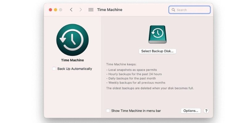 Nên thực hiện sao lưu thiết bị qua Time Machine được tích hợp trên macOS vào ổ đĩa ngoài.