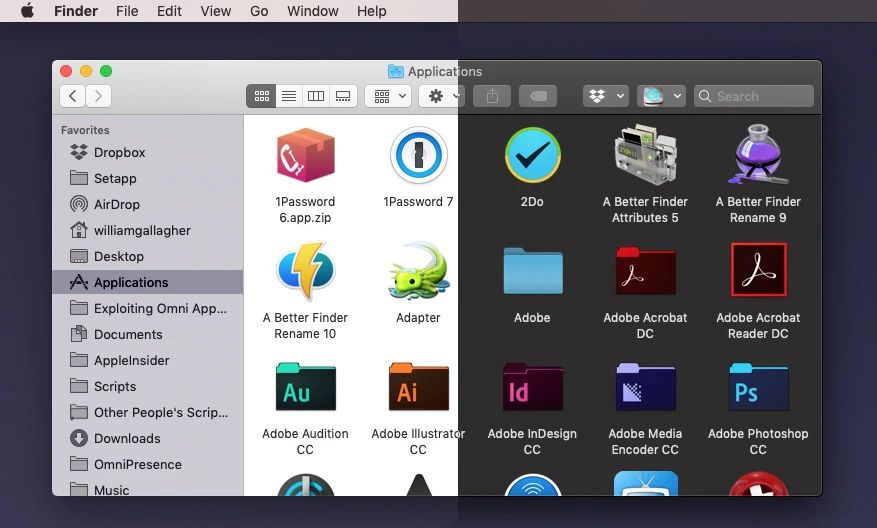 Ra mắt vào ngày 24 tháng 9 năm 2018, tính năng mới chính của macOS 10.14 Mojave là chế độ tối, một giao diện người dùng thay thế. Người dùng có thể chuyển đổi giữa chế độ tối và sáng và chủ đề cũng có thể thay đổi theo lịch trình thông qua Dynamic Desktop.