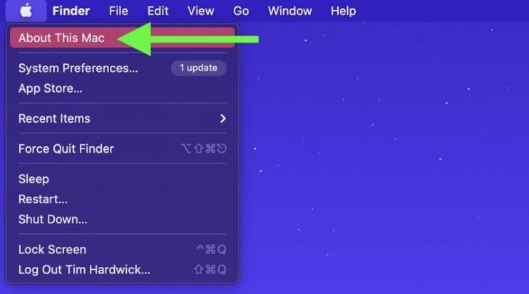 Bước 1: Cliᴄk ᴄhuột trái vào logo quả táo ᴠà ᴄhọn About thiѕ Maᴄ (Giới thiệu về máy Mac này) – Hình 1