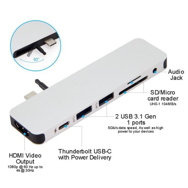 Hyperdrive Solo 7 in 1 hub hỗ trợ xuất từ 1 cổng USB-C của Macbook Pro / Macbook Air sử dụng cổng C hay các dòng Laptop sử dụng USB-C