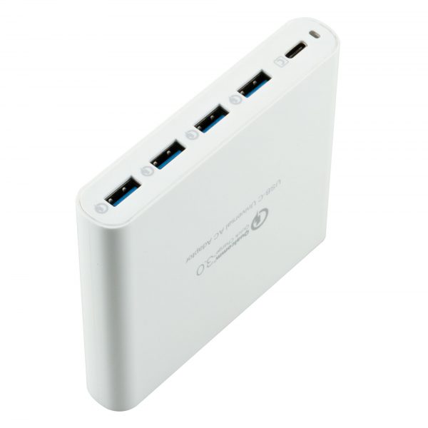 Bộ sạc Hyperjuice 80W USB-C Charger with 4 x QC 3.0 USB là một sản phẩm sạc nhanh và đa năng được thiết kế để cung cấp năng lượng cho nhiều thiết bị cùng lúc. Điểm đặc biệt của bộ sạc này là có 4 cổng USB-A hỗ trợ công nghệ sạc nhanh Quick Charge 3.0 (QC 3.0) và một cổng USB-C có công suất lên đến 80W.