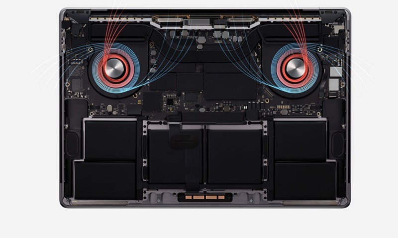 Tuy được Apple trang bị hệ thống tản nhiệt khá nhỏ nhưng bù lại nó rất thông minh từ đó giúp Macbook Pro 16 inch 2023 vẫn duy trì được mức hiệu năng tối đa trong mọi hoạt động.