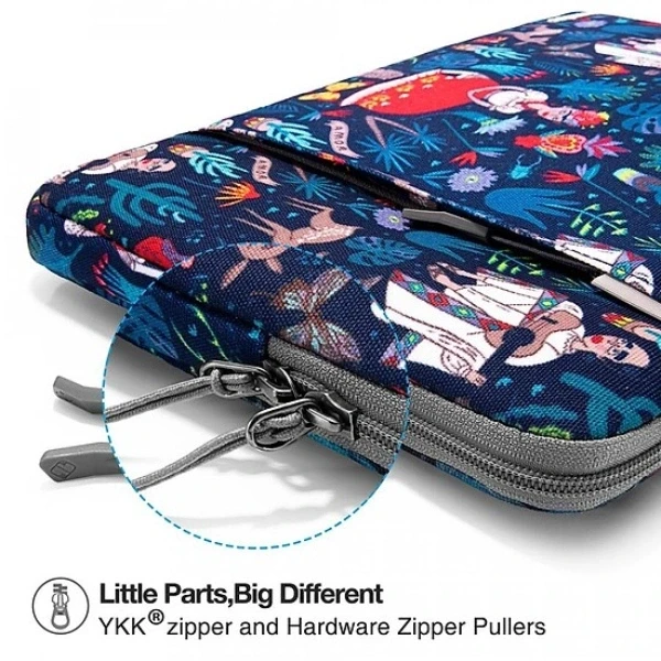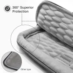Sử dụng chất liệu bên ngoài bằng Polyester kháng nước, đặc biệt trang bị thêm lớp mood gợn sóng đẹp mắt giúp tăng sự đàn hồi, bảo vệ hoàn hảo chống va đập và trầy xước cho máy tính.Bên ngoài túi trang bị thêm một ngăn mở rộng để sạc, calbe, tai nghe tiện lợi khi di chuyển.