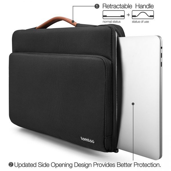– Sử dụng công nghệ sáng chế tiên tiến của Hoa Kỳ CornerArmor™ trang bị phía dưới túi chống sốc một lớp đệm bảo vệ 360* xung quanh vành túi một cách an toàn như một túi khí xe hơi. Túi xách chống sốc Tomtoc Briefcase thu hút khách hàng khó tính bởi kết cấu chống sốc hoàn hảo giúp máy tính hoàn toàn có thể được bảo vệ khi sảy ra vấn đề va chạm.Dây kéo phía trên vô cùng mượt mà, đàn hồi, chắc chắn và nhẹ nhàng cho phép mở hoặc đóng máy tính một cách nhanh chống.